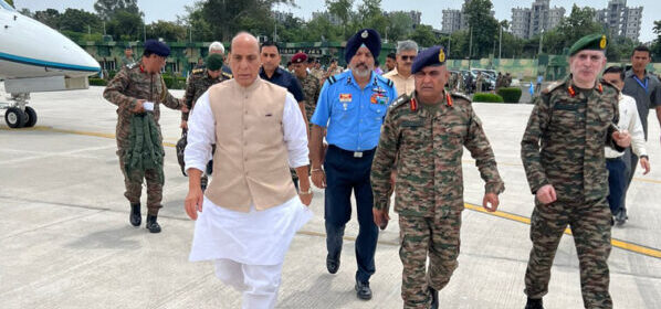 After landing in Jammu, Singh was received by Army Chief Manoj Pande and Lt Governor Manoj Sinha.