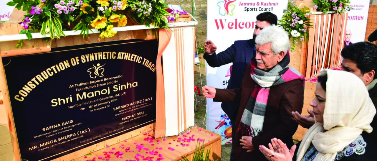 The projects for which foundation stones were laid by the Lt Governor include Astro Turf for Football at Sheikh-ul-Alam Stadium; 8- Lane Synthetic Athletic track Surface at Tulibal Sopore; Installation of Blow Moulded Chairs for General Bipin Rawat Stadium; Spawn Production Laboratory in Public Sector under (HADP) for Mushroom Promotion in Baramulla and Laboratory Block at Government Higher Secondary School Authoora.