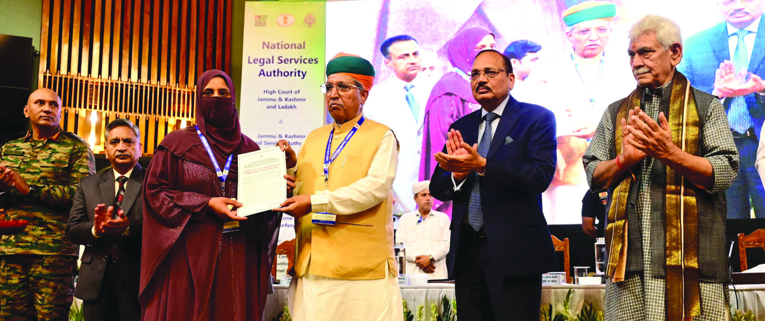 The event was graced by Judge Supreme Court of India and Executive Chairman National Legal Services Authority, Shri Justice Surya Kant; Union Minister of State for Law and Justice, Shri Arjun Ram Meghwal; Chief Justice High Court of Jammu Kashmir and Ladakh, Shri Justice Arun Palli; Chief Minister, Shri Omar Abdullah; Judge High Court of J&K and Ladakh and Executive Chairman J&K Legal Services Authority, Shri Justice Sanjeev Kumar; Judge High Court J&K and Ladakh and Executive Chairperson Ladakh Legal Services Authority, Smt. Justice Sindhu Sharma; General Officer Commanding-in-Chief, Northern Command, Lt. General Pratik Sharma; Hon’ble Judges of Supreme Court of India and Chief Justice of various States and UTs.